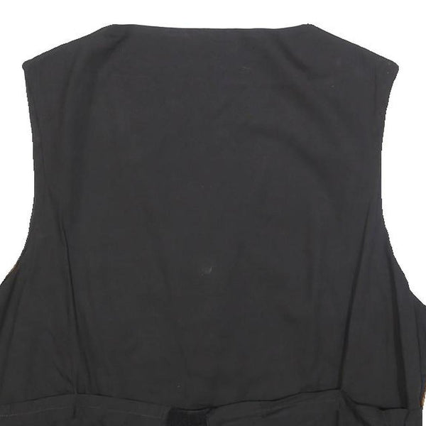 Made from a polyester blend, the fabric has a smooth, slightly shiny finish that feels soft to the touch. The waistcoat offers a tailored fit with a classic V-neckline, no collar, and two front welt pockets for added style and function. The adjustable strap at the back allows for a customised fit.