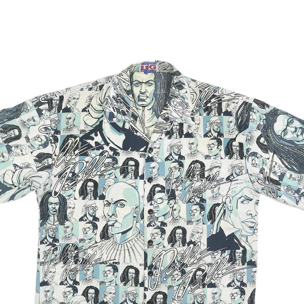 TOUGH GUY Mens White & Blue Pattern Shirt XL Unique Graphic Design