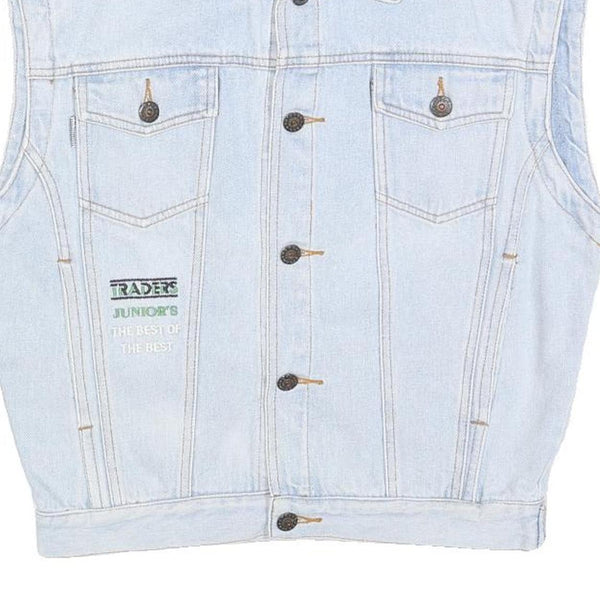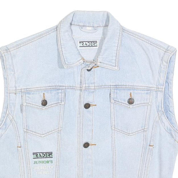 TRADERS Boys Blue Cotton Denim Sleeveless Jacket L Button Plain Stylish