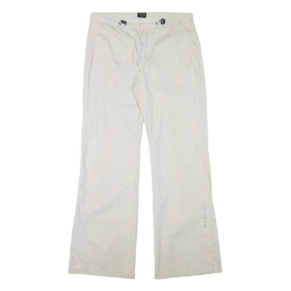 TRAILER Mens Polyester Blend Cream Relaxed Drawstring Trousers W33 L33 Casual