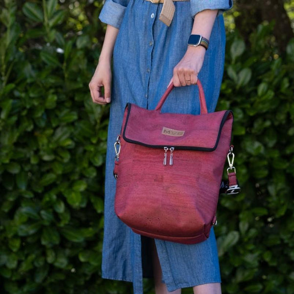 Discover the epitome of versatility with our MVB Trio Backpack. This exceptional accessory adapts effortlessly to your every need, offering three distinct styles in one. Carry it as a chic backpack for hands-free convenience, transform it into an elegant handbag for a touch of sophistication, or wear it as a comfortable shoulder bag for a casual yet trendy look. Plus, you have the freedom to choose between three handle options: a rigid one for a bold statement, a soft one with our iconic logo, or a natural cork handle that blends seamlessly with the bag's design.