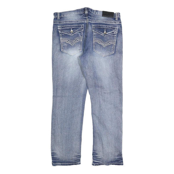 Home TRUE LUCK Mens Jeans Blue Regular Straight Denim Medium W36 L32 Stylish Casual