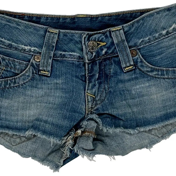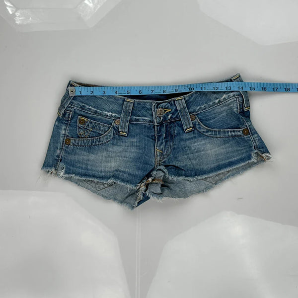 True Religion Denim Shorts, fit a US size 0 with a 28″ Waist.