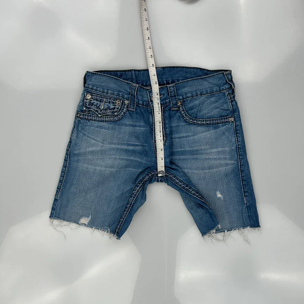 True Religion Denim Shorts, fit a 32″ Waist and 10″ inseam.