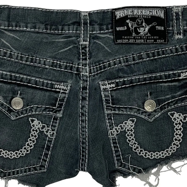True Religion Denim Shorts, fit a UK size 12 with a 33″ Waist.
