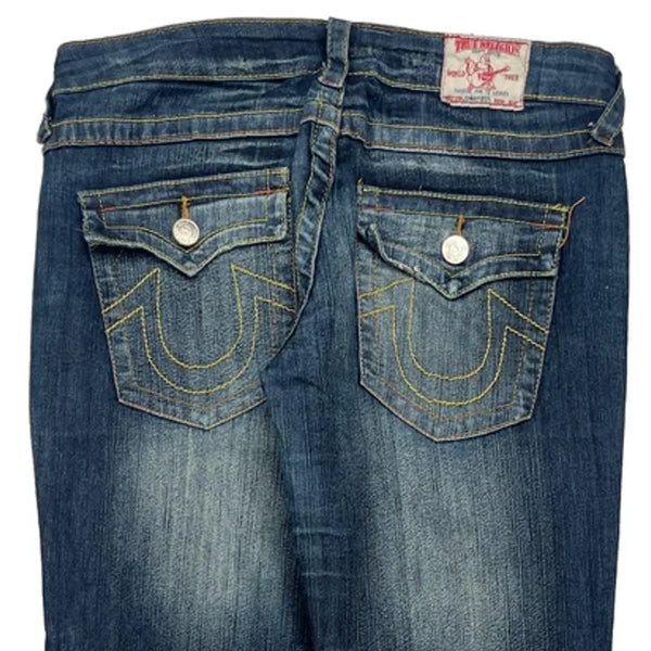 True Religion Jeans With Contrast Stitching And Buttoned Back Pockets.