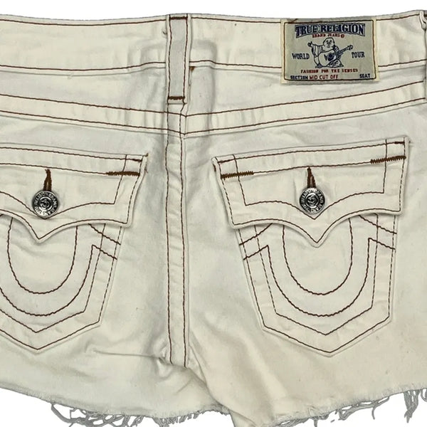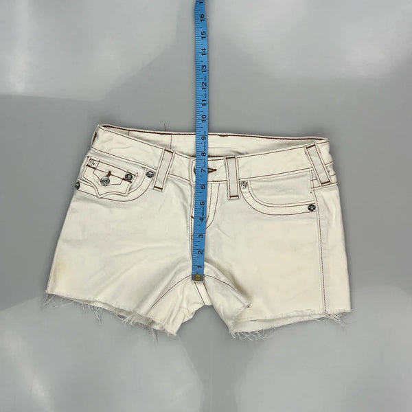 True Religion Denim Shorts, fit a US size 2 with a 28″ Waist.