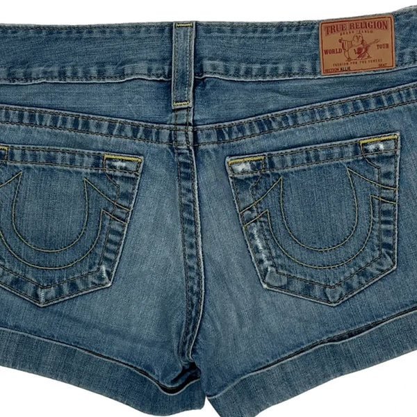 Classic True Religion Denim Shorts With Signature Stitching On Back Pockets.