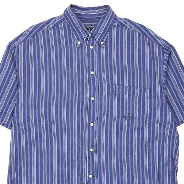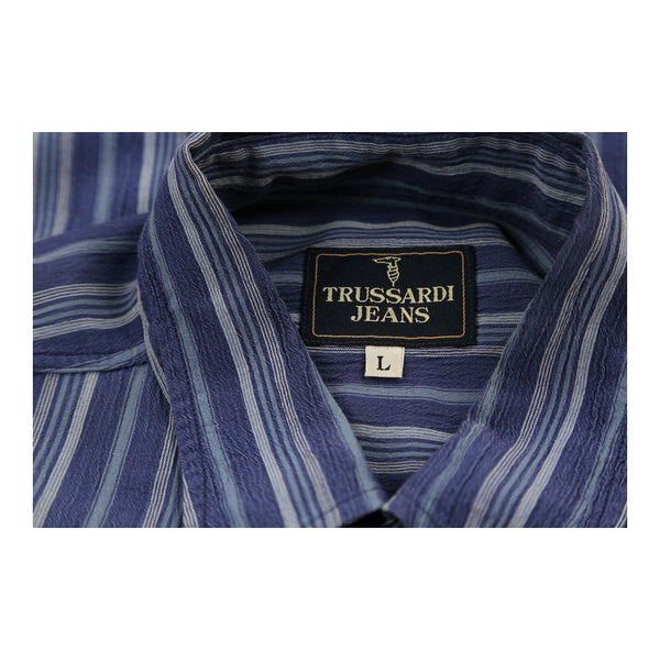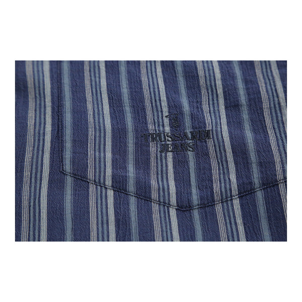 Trussardi Jeans Striped Short Sleeve Shirt - Large Blue Cotton