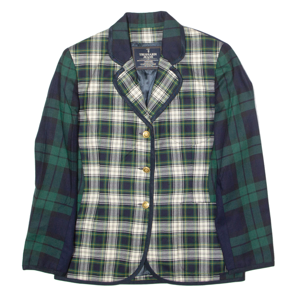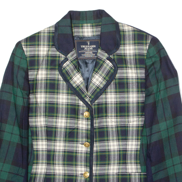 TRUSSARDI JEANS Womens Blazer Jacket Green Wool 90s Plaid M