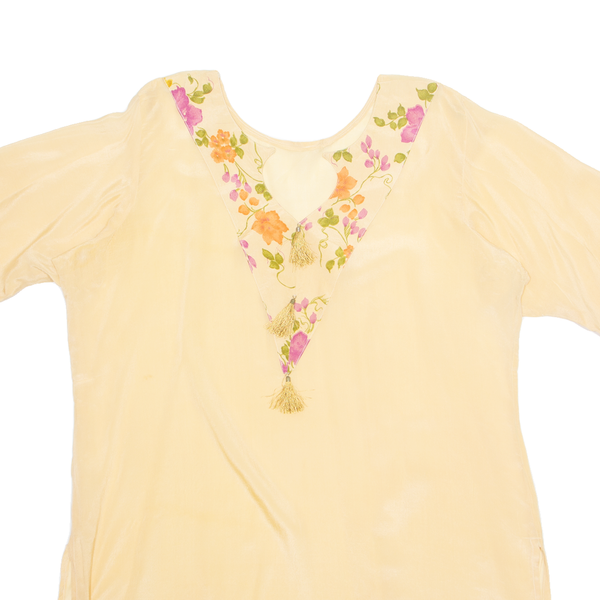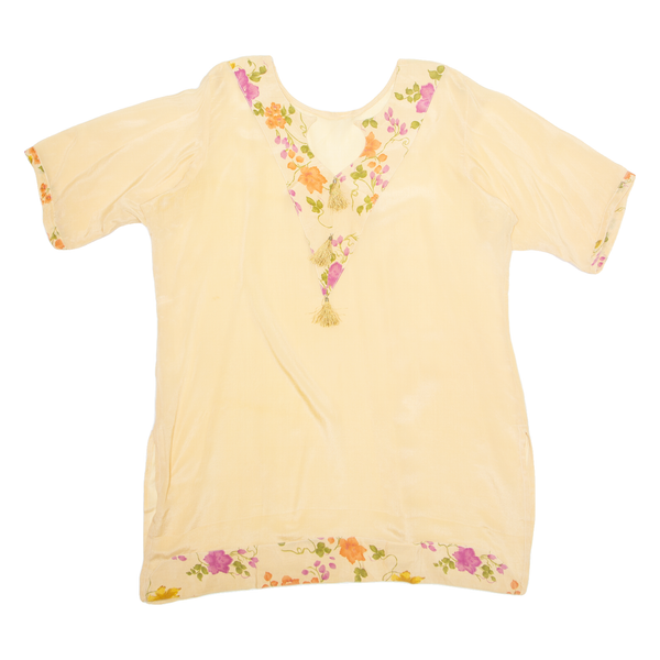 Tunic Womens Printed Blouse Beige V-Neck Floral XL