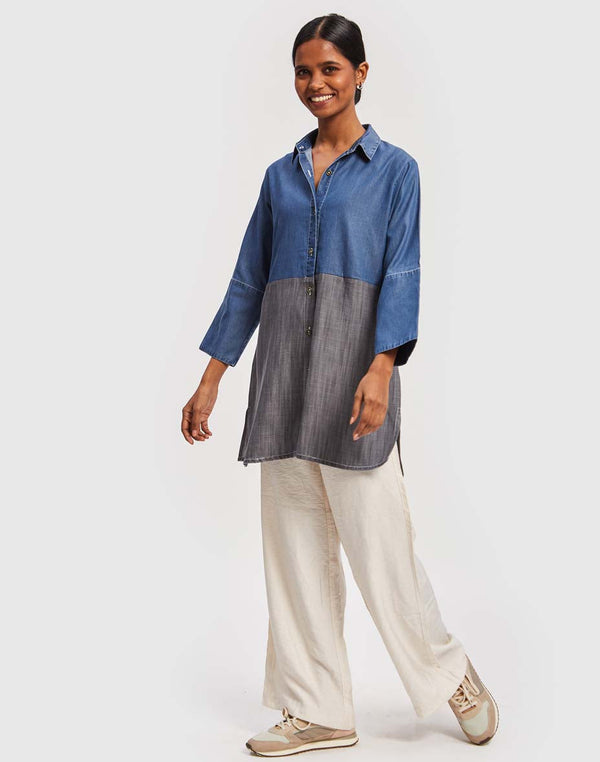 To add a little drama to your everyday, choose this colour blocked Tencel shirt. It's soft, comfortable and stylish all in one.