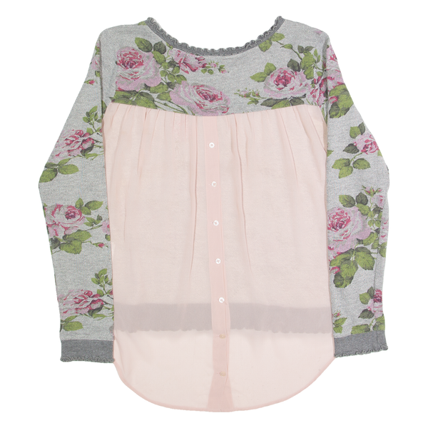 TWIN SET Womens Printed Blouse Grey Long Sleeve 90s Floral S