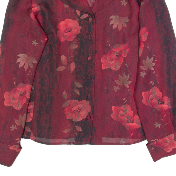 UN JOUR AILLEURS Womens Printed Shirt Red Collared Long Sleeve Floral UK 14