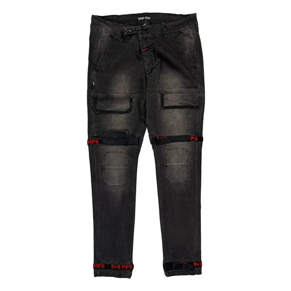 Gray Cargo Pants With Multiple Pockets And Red Embroidery