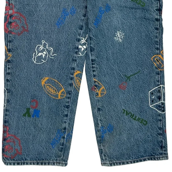 Home Unbranded Graphic Carpenter Jeans - 34W 30L Multicoloured Denim