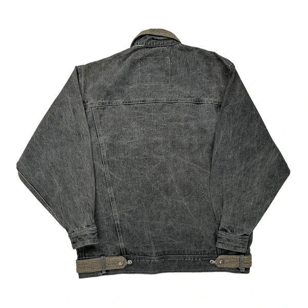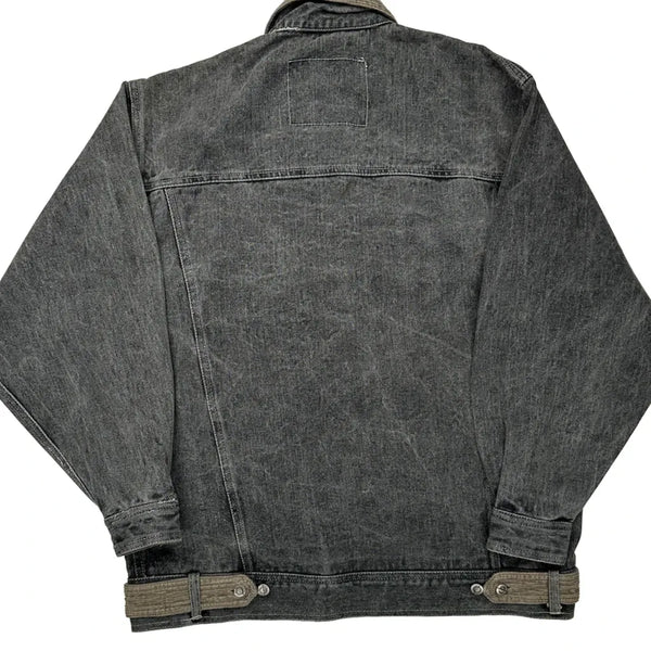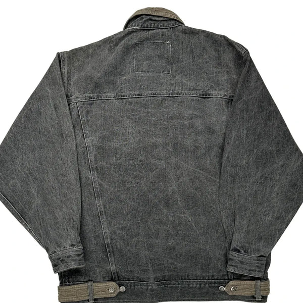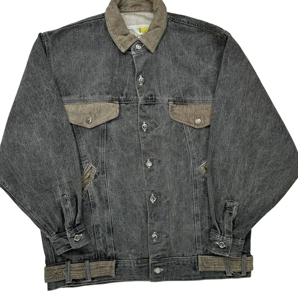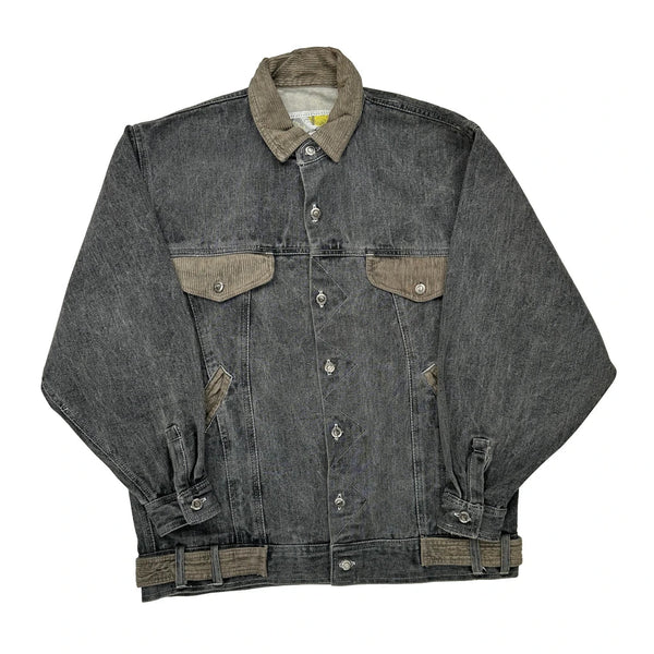 Grey Denim Jacket With Corduroy Collar And Accents