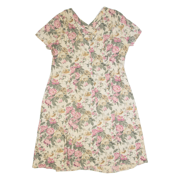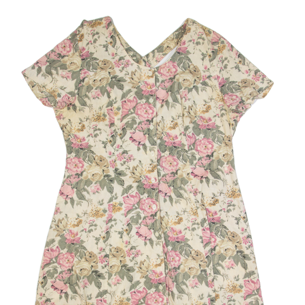 UNI MONDO Womens Tea Dress Cream 90s Floral Short Sleeve Long XL