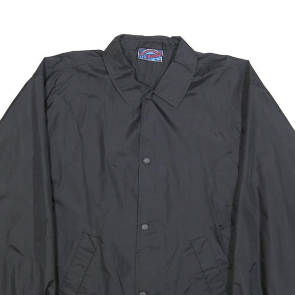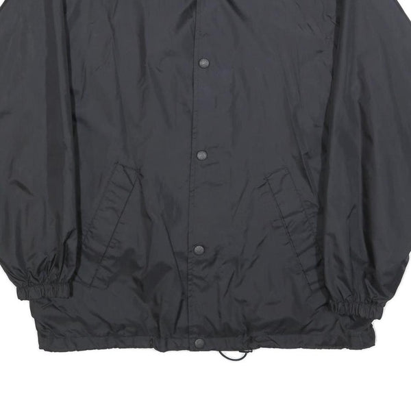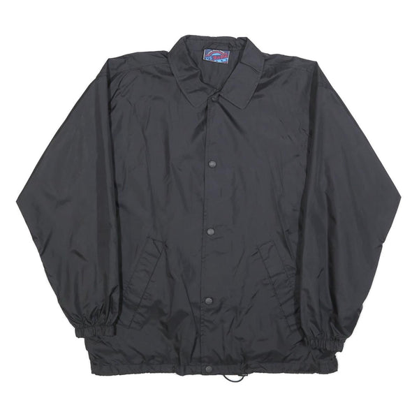 US BASIC Mens Black Nylon Coach Jacket L Button Plain Lightweight Stylish