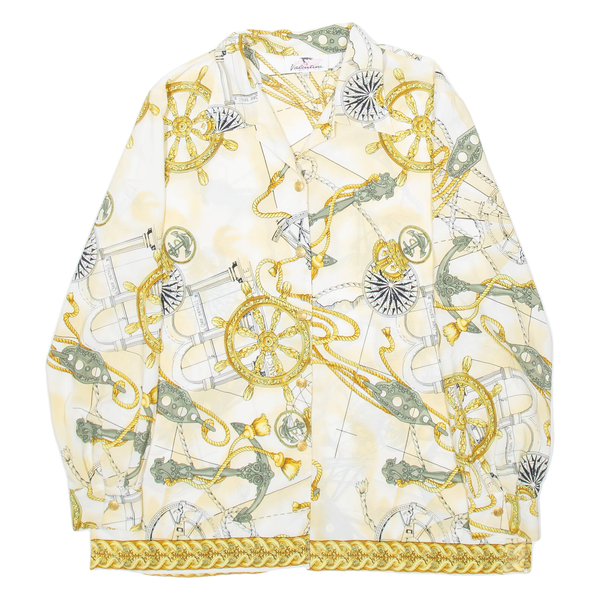 VALENTINE Womens Printed Shirt Beige Collared Long Sleeve Crazy Pattern L