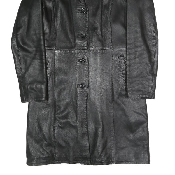 VERA PELLE Womens Black Faux Leather Coach Jacket M Woven Fabric Classic Fit