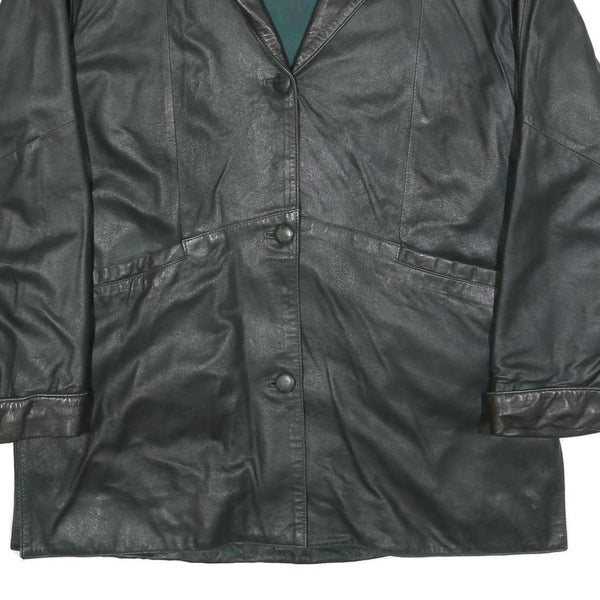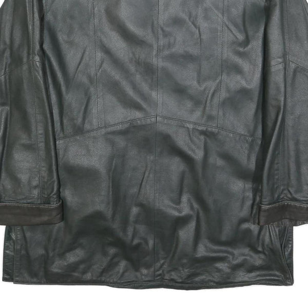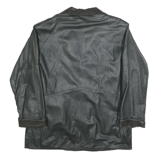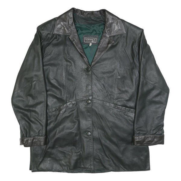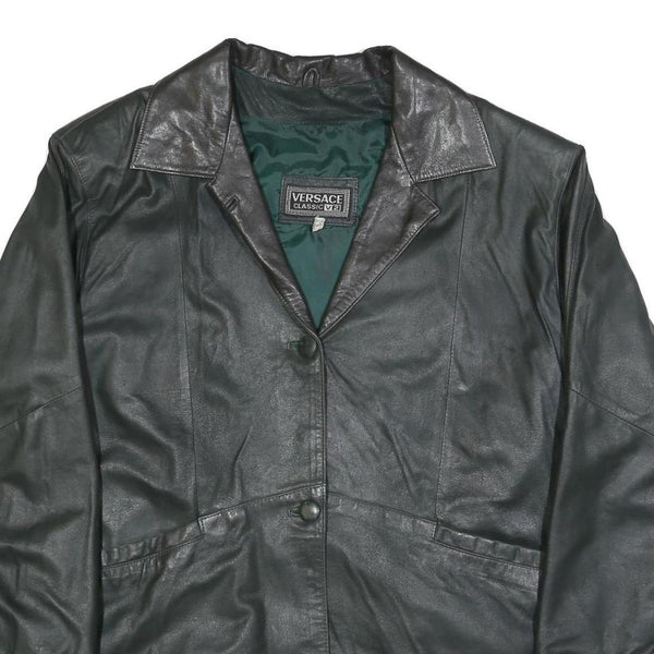 VERSACE Mens Black Leather Jacket L Leather Plain Button Closure Classic