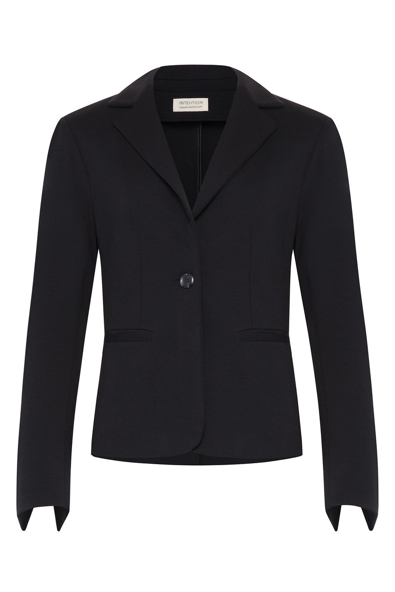 This vintage-inspired jacket is dip-dyed in jet-black during an earth-friendly process. It is also a part of Intention's interchangeable suiting collection, ensuring this eco-friendly women's jacket matches any of our jet-black pants and skirts. If you are looking to stop traffic and turn heads, then this is the jacket for you.