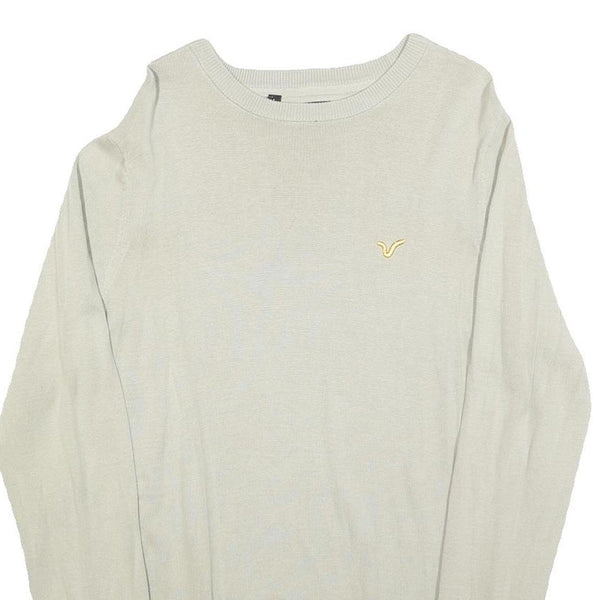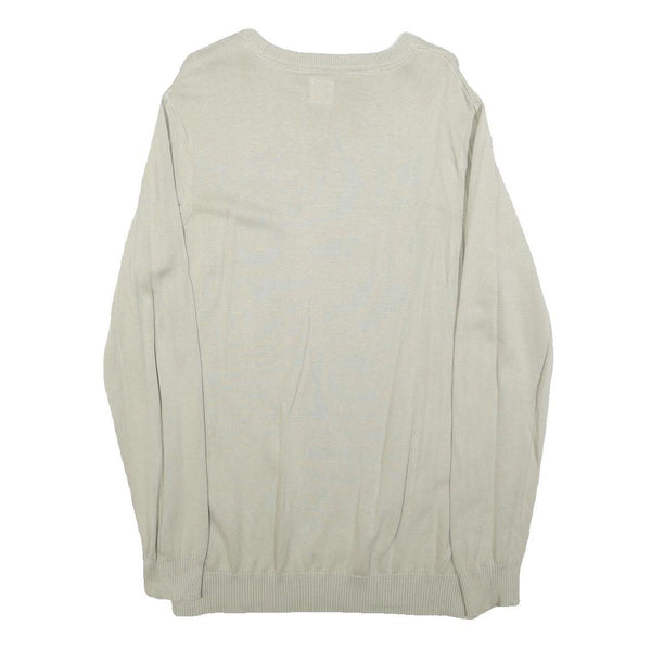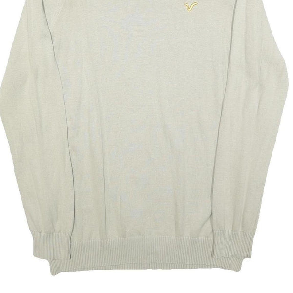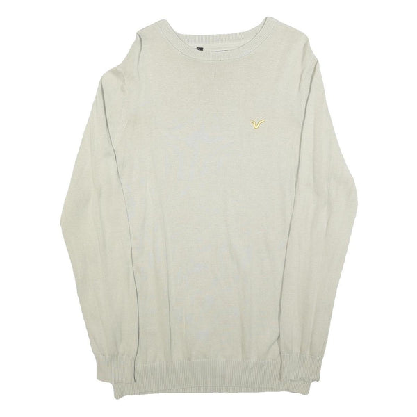 VOI JEANS Mens Cream Plain Cotton Crew Neck Basic Knit Jumper L Stylish Comfort