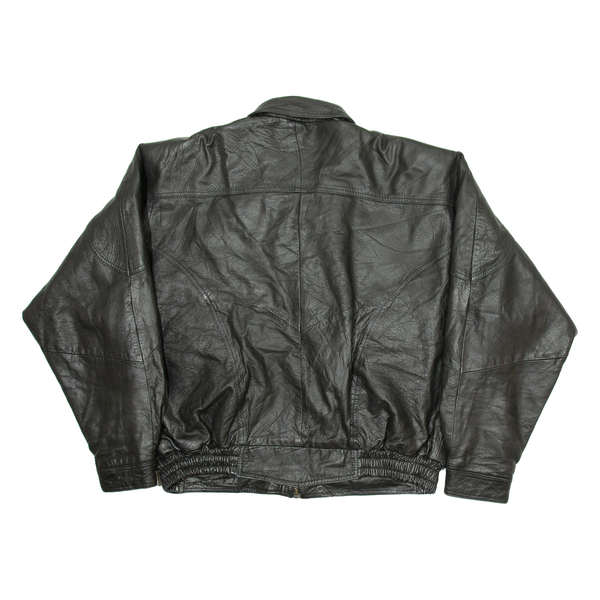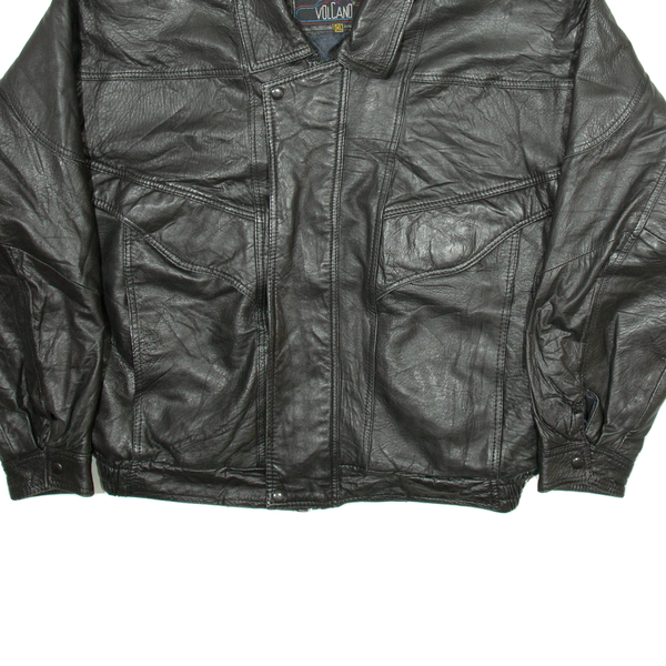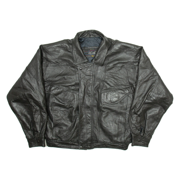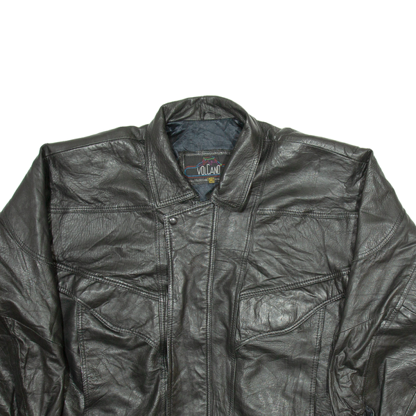 VOLCANO Mens Biker Jacket Black Leather XL