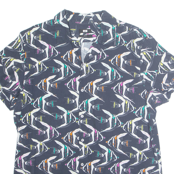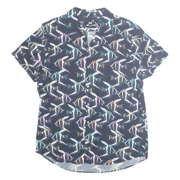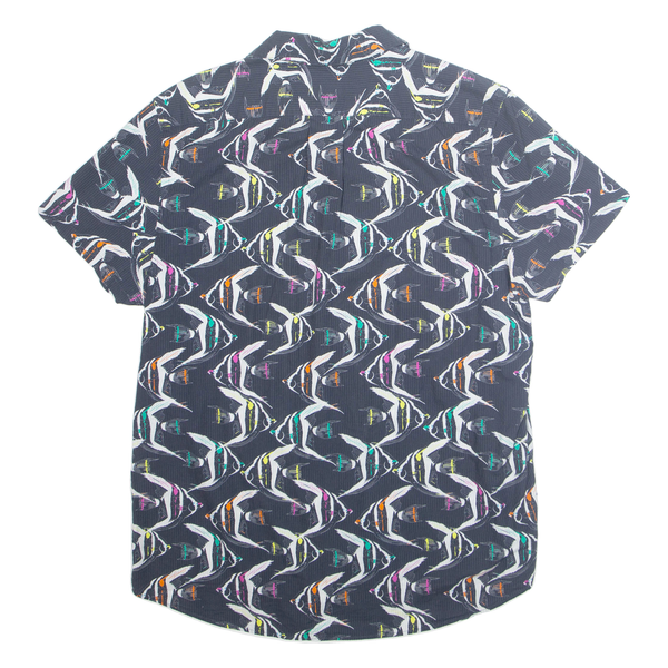 WE Slim Fit Mens Hawaiian Shirt Black Animal Print XL
