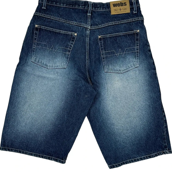Webs Denim Shorts, fit a 34″ Waist and 11″ inseam.