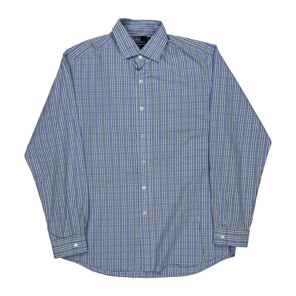Westerton italian broadcloth polo by ralph lauren checked shirt - large blue cotton