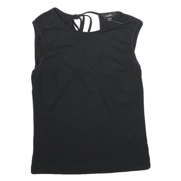 WHISTLES Womens Black Sleeveless Top Crew Neck UK 10 Cotton Simple Elegant