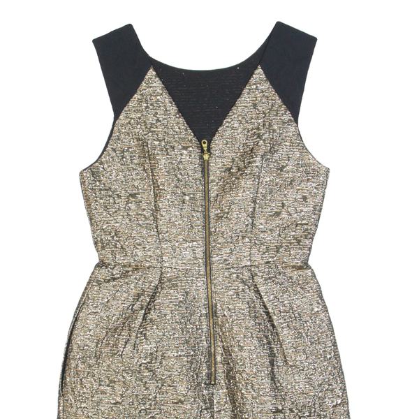 WHISTLES Womens Fit & Flare Dress Gold Sleeveless Knee Length UK 6