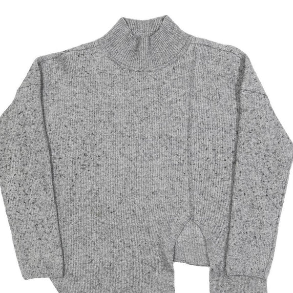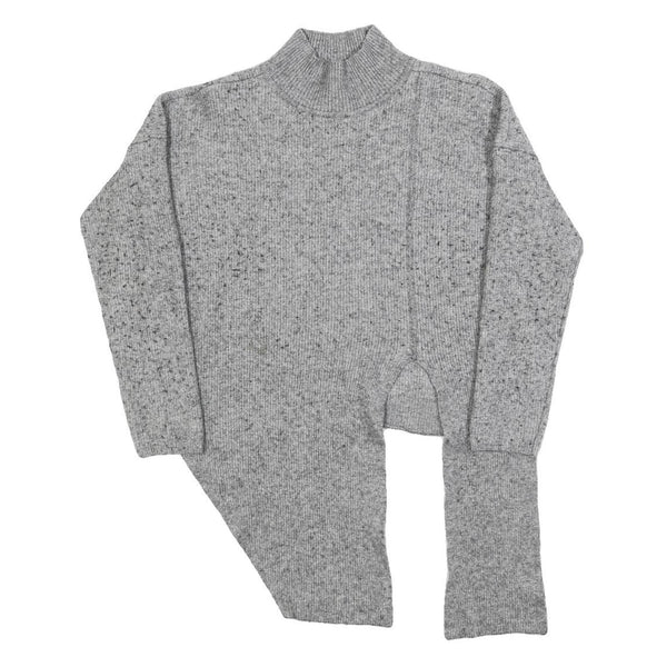 WHISTLES Womens Grey Wool Blend Plain Pullover Crew Neck Basic Knit M Asymmetric