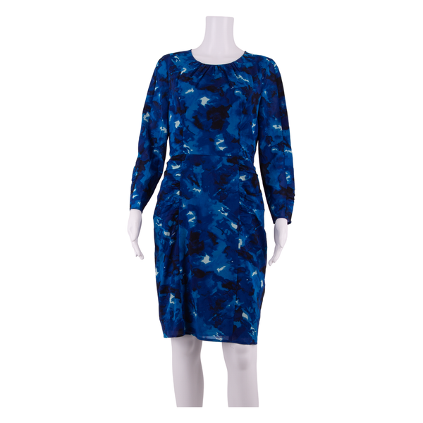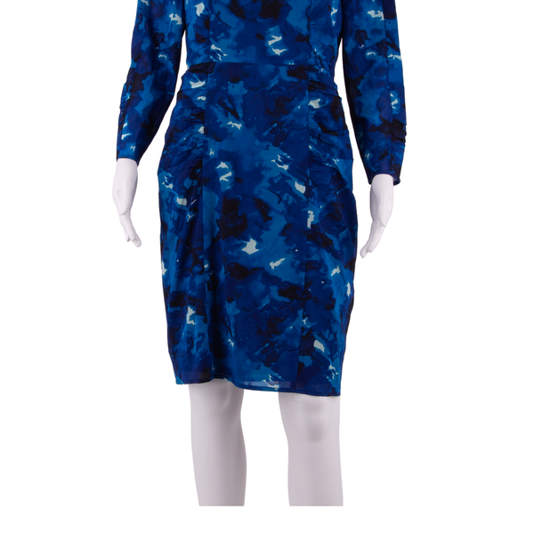 WHISTLES Womens Pencil Dress Blue Silk Crazy Pattern Knee Length UK 12