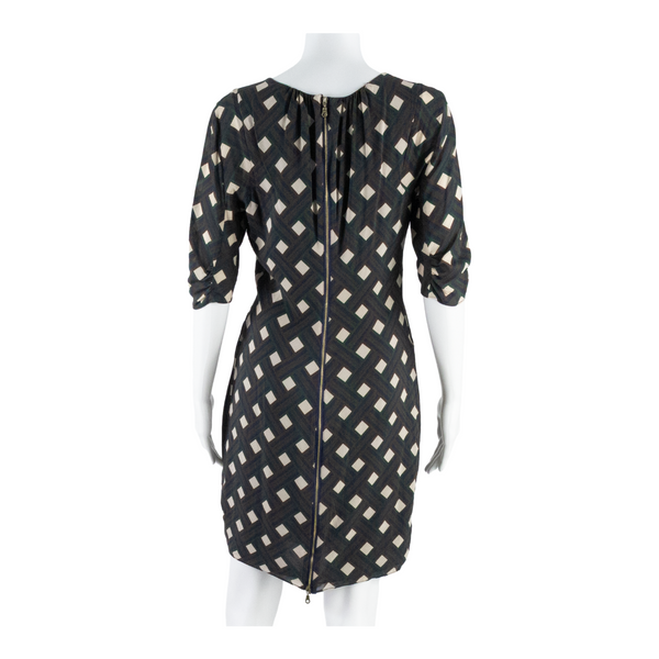WHISTLES Womens Pencil Dress Green Silk Check Short Sleeve Knee Length UK 10