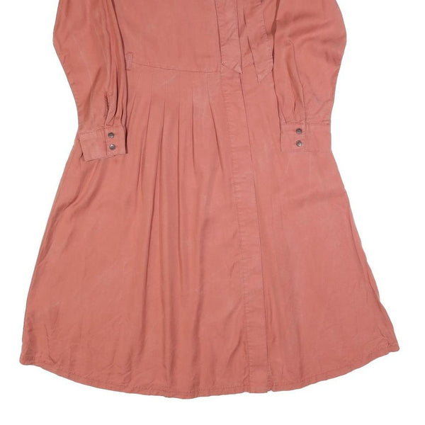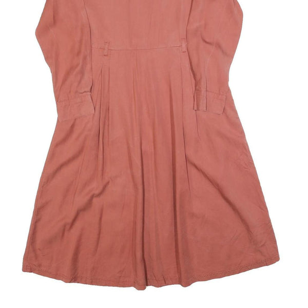 This WHISTLES womens dress features a soft red hue crafted from a comfortable cotton blend fabric. It has a shirt dress style with long sleeves, a round neckline, and button cuffs. The design includes fine pleating below the waist, adding subtle movement and shape to the knee-length silhouette.