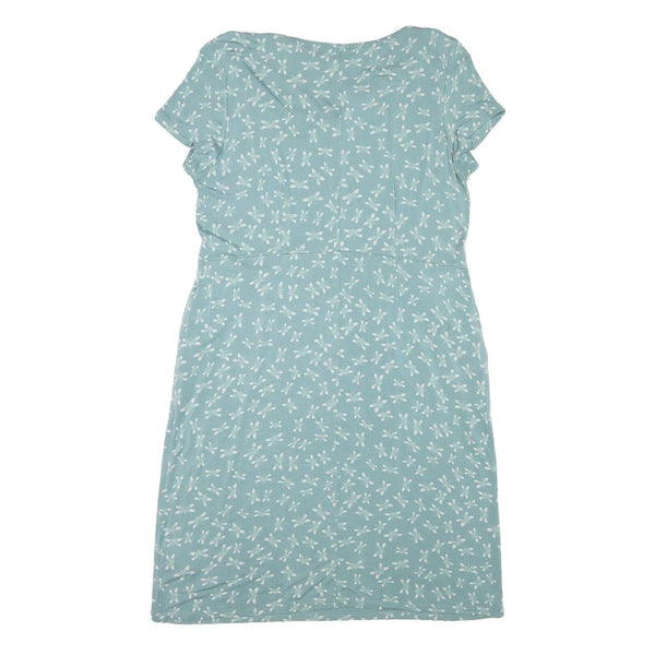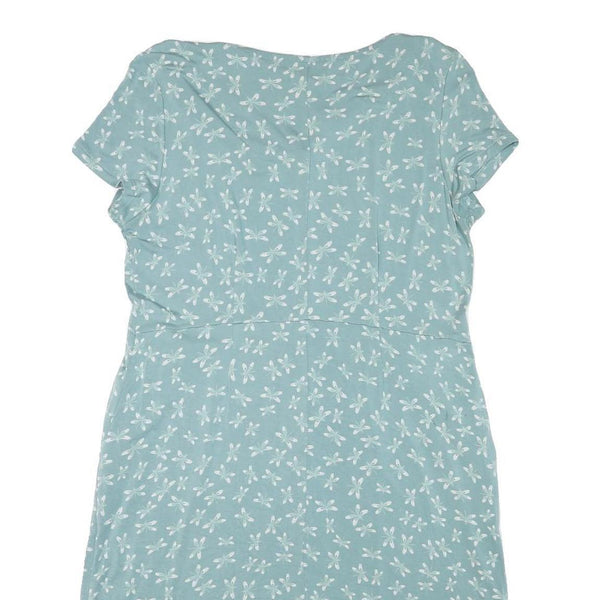 White stuff womens blue floral day cotton blend dress uk 16 pockets v-neck
