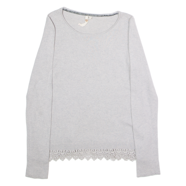 Home WHITE STUFF Womens Patterned Jumper Grey Tight Knit Wool UK 8