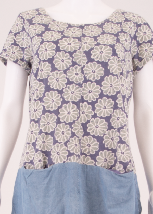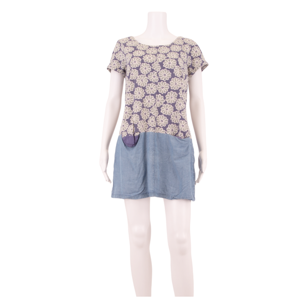 WHITE STUFF Womens Shift Dress Blue Short Sleeve Knee Length UK 14