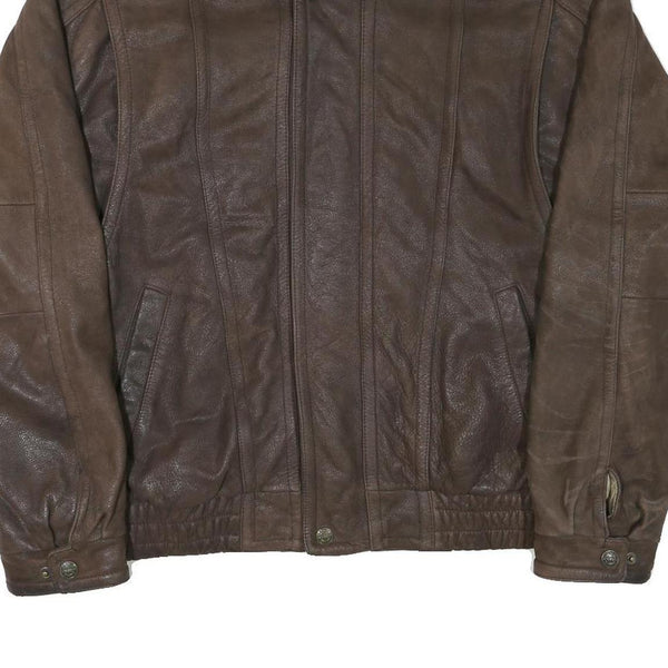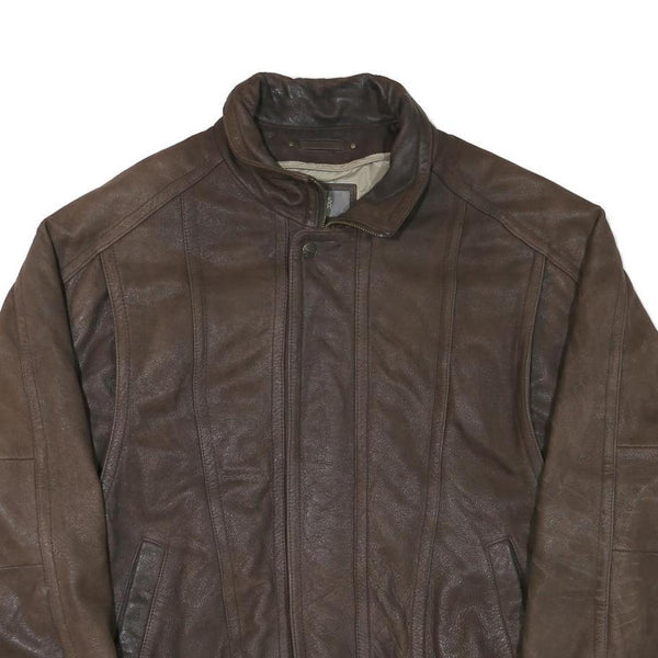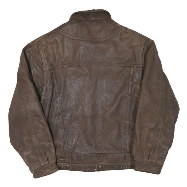 WILSON LEATHER Mens Brown Leather Bomber XL Leather Jacket Zip Plain Casual