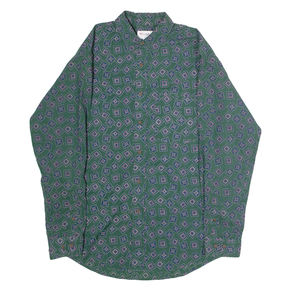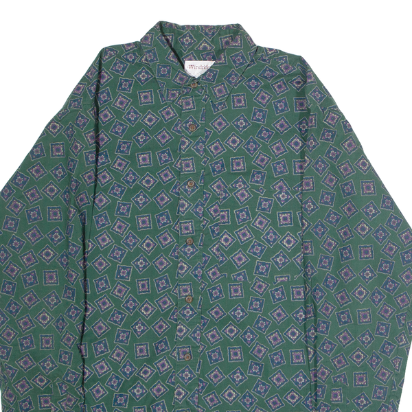 WINDRIDGE Mens Shirt Green 90s Diamond Long Sleeve M