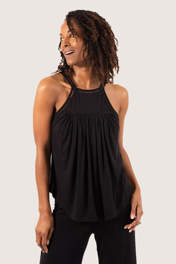 It's always happy hour in this chic top! Sink into that 5pm feeling, anytime. This racerback top provides the bra-less comfort and the Light Hug® you want at the end of the day. Detailed with an eye-catching trim along the bust line, with a flowy, flattering fit. Made for staying in or showing off! Take braless beyond the bedroom with this chicly styled top.