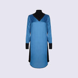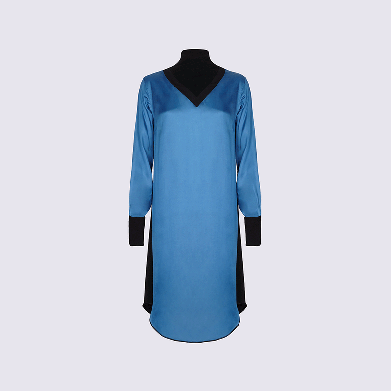 Our Winter Jay Dress is entire seamless and designed for people with sensitive skin and lovers of vegan silk. The organic fabric on the high neck and sleeves are to be rolled up and down for extra comfort to keep us warm and stylish.