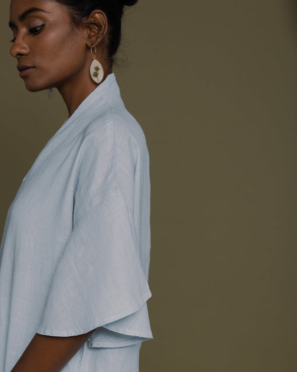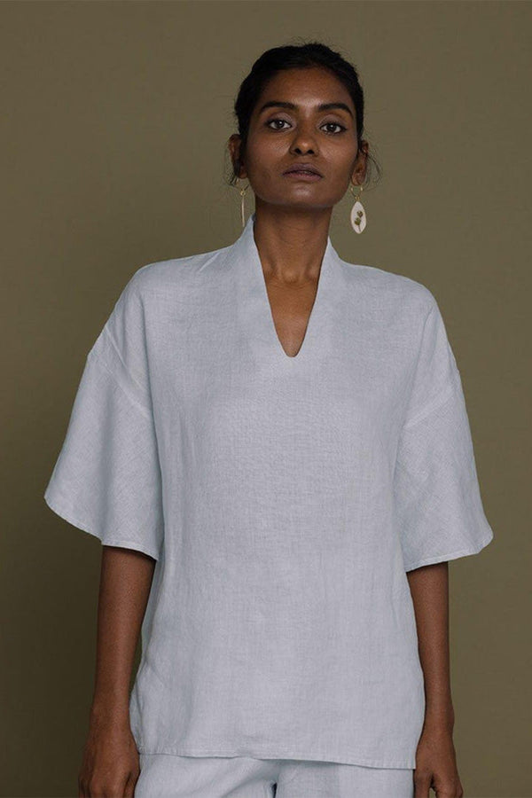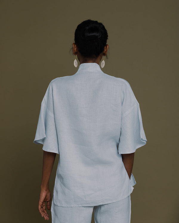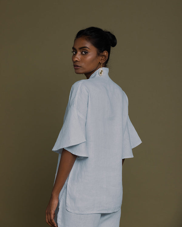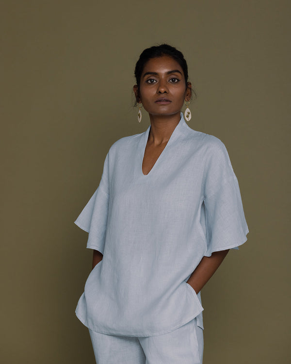 Raised at the back and a narrow V-neck in front, this breezy top has chic ruffle sleeves for added flair. Keep it casual or add a belt for a fitted look!