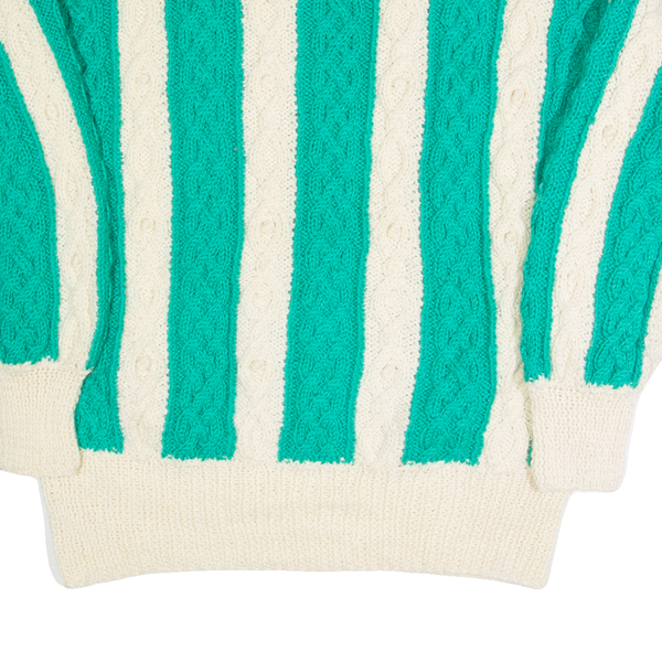 Womens Aran Jumper Cream Striped 90s Cable Knit L