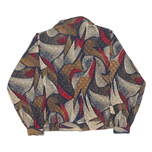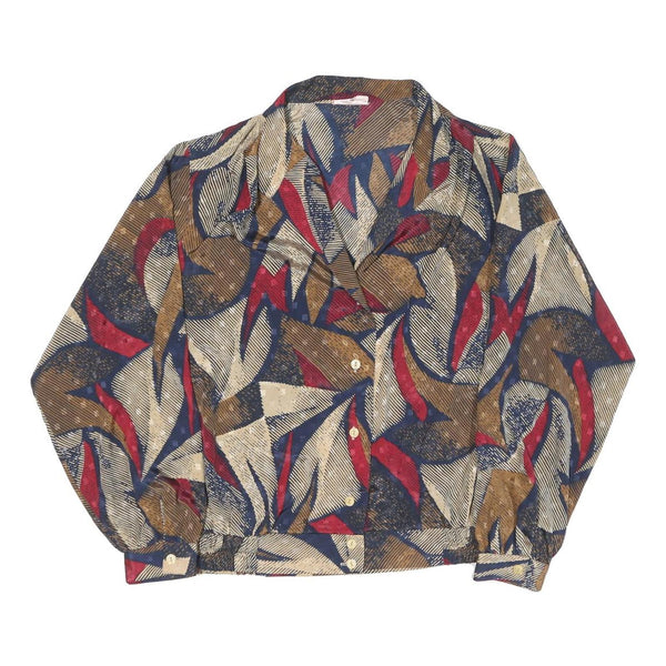 Womens beige brown blue red abstract print polyester blend shirt m button up