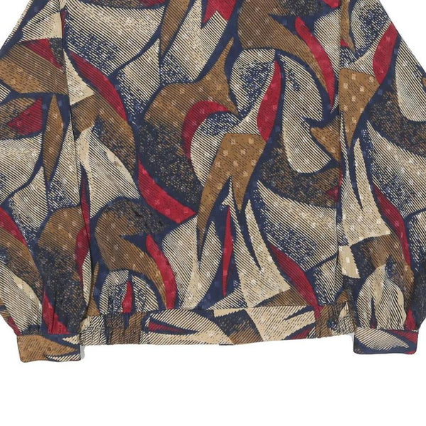 Womens Beige Brown Blue Red Abstract Print Polyester Blend Shirt M Button Up