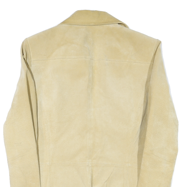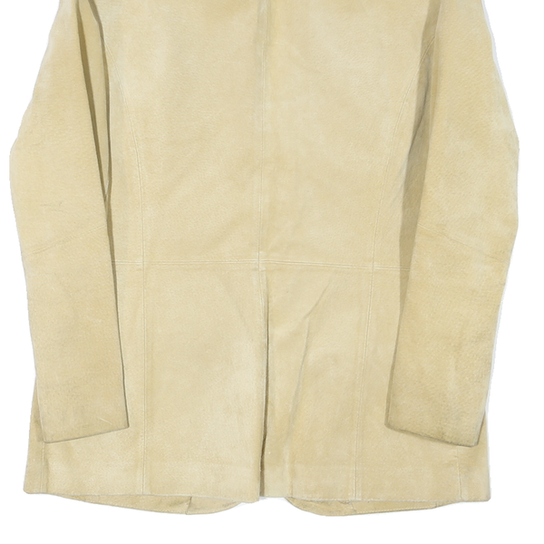 Womens Beige Coach Jacket M Suede Woven Plain Classic Fit Button Closure Long